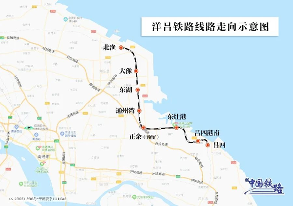 洋吕铁路位于江苏省南通市东北沿海,北衔海洋铁路北渔站,南接宁启铁路吕四站,途经启东市、海门区、通州湾示范区、如东县,为国铁Ⅱ级单线铁路,全长约78公里,设计时速120公里,是打造通州湾新出海口、完善南通市沿海港口集疏运体系的关键工程。![]()